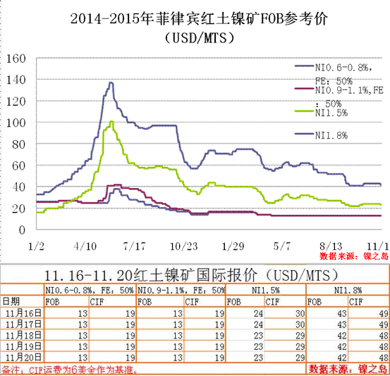 相对国内港口现货镍矿,期货矿因政策及季节性因素表现较为坚挺。就NI.5%中镍矿及NI1.8%高镍矿而言,主流报价环比下调1美金/吨,下调幅度较小。
